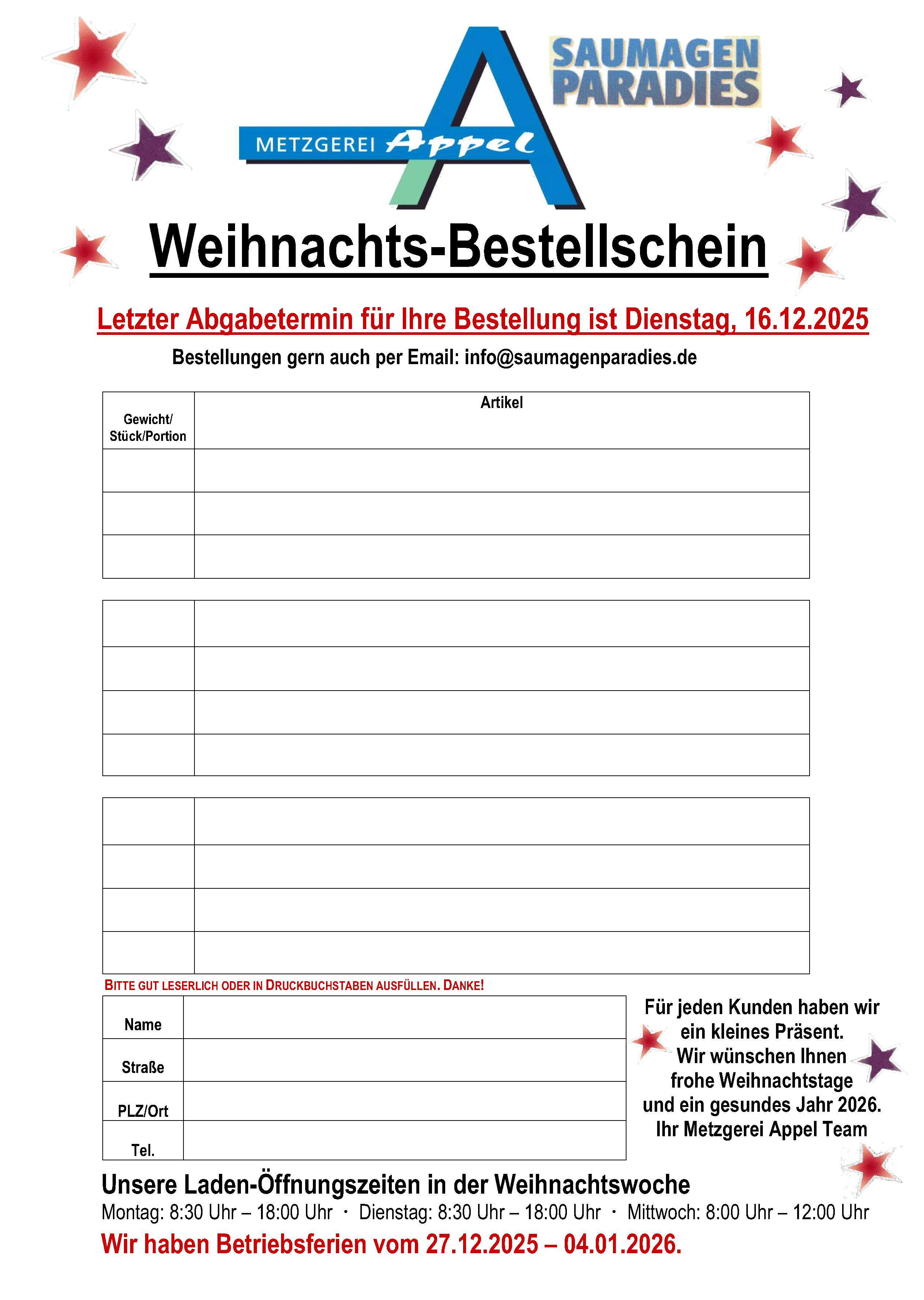 Betriebsferien vom 27.12.2025 – 04.01.2026