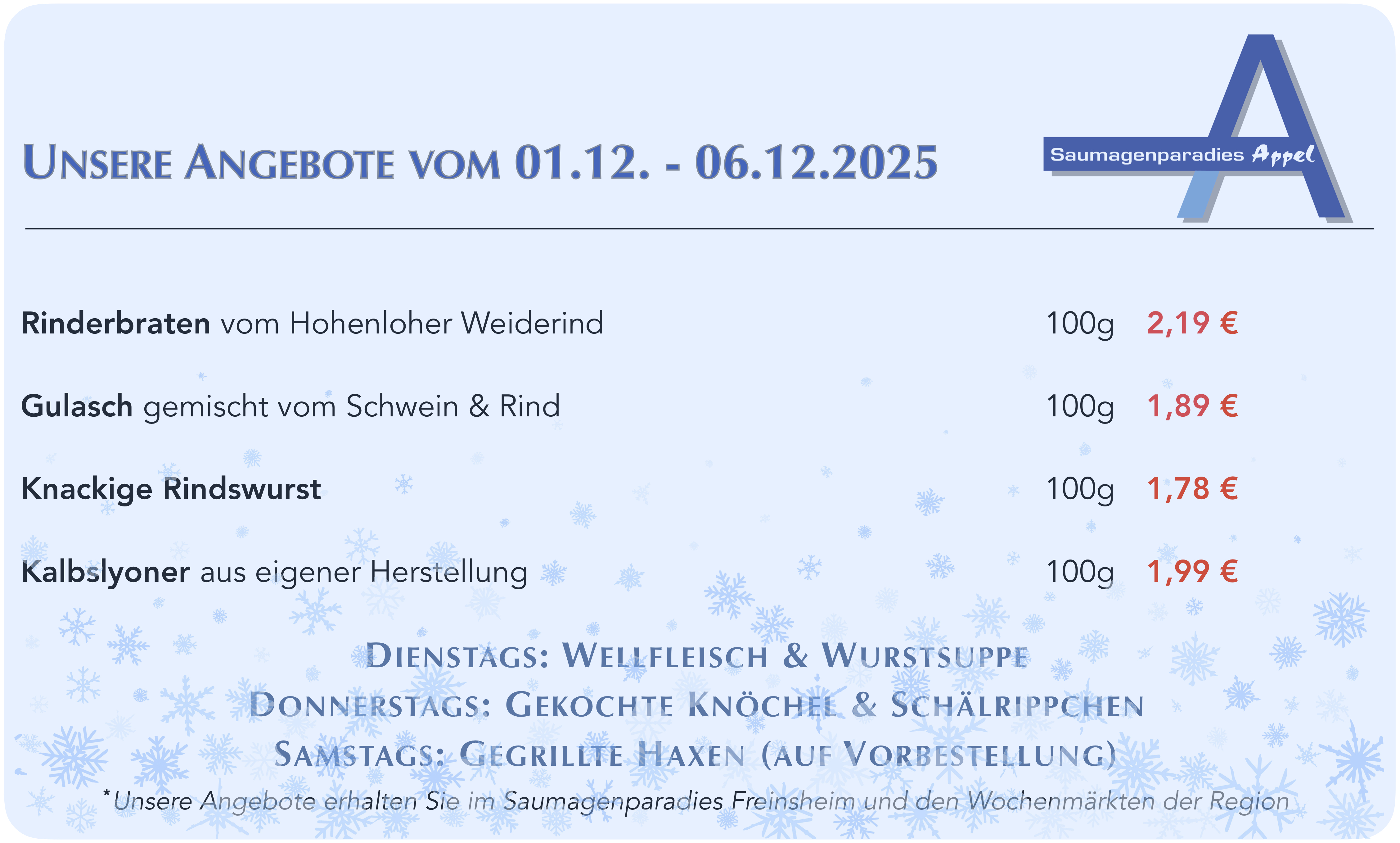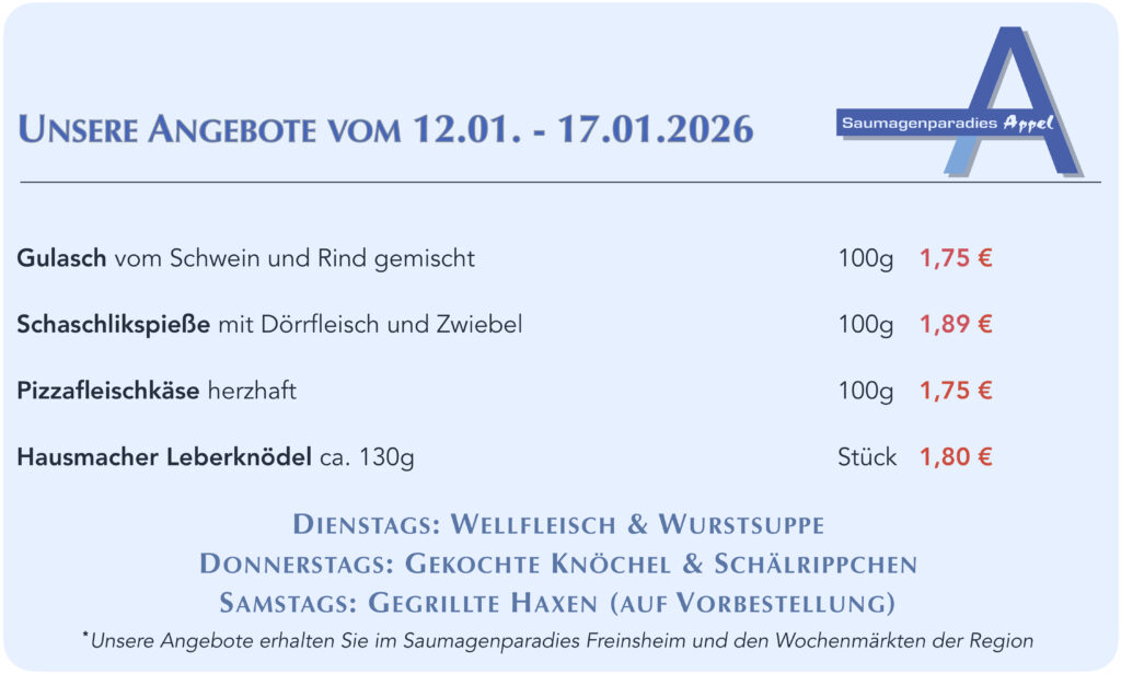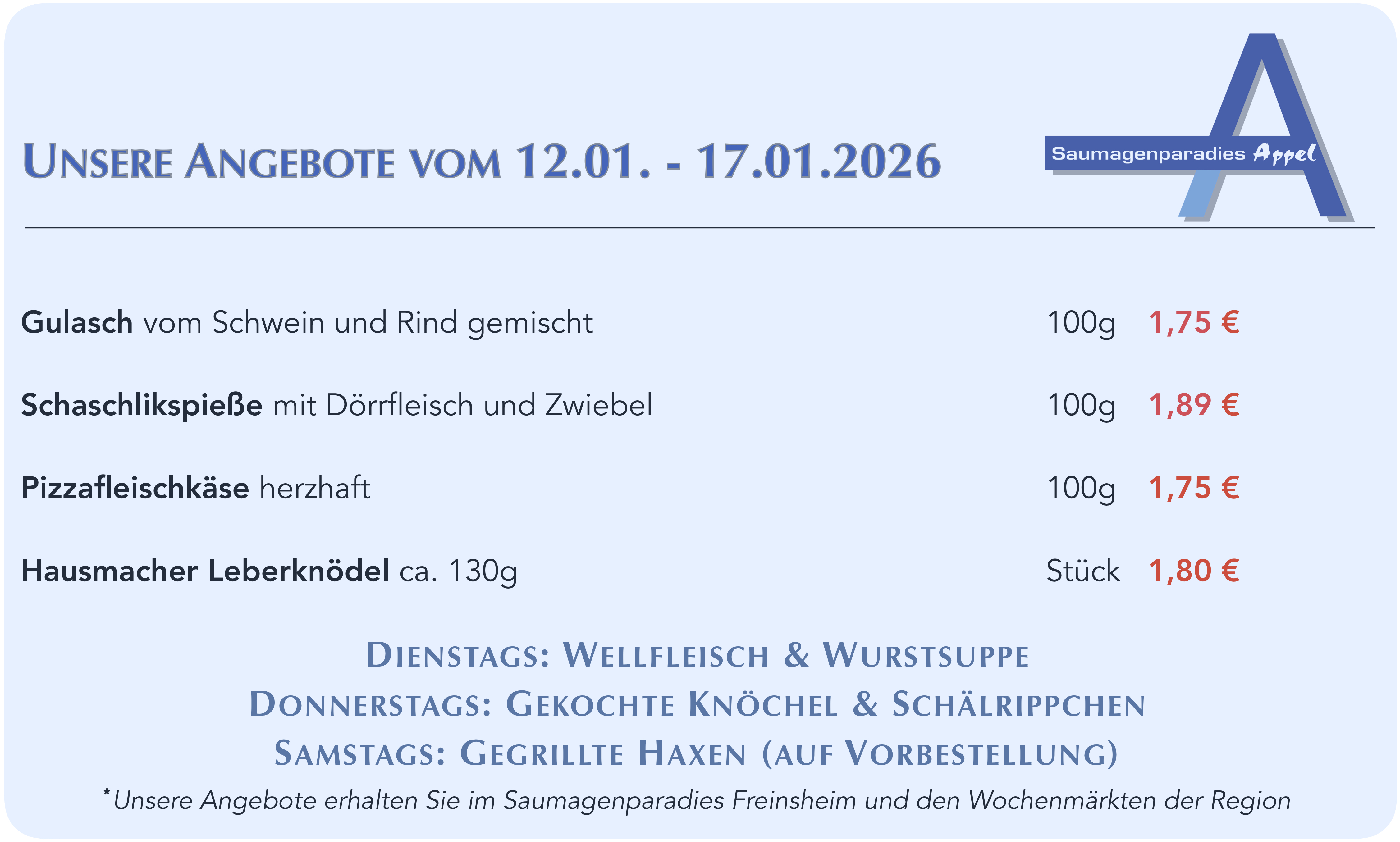 Appel´s Saumagenparadies – auf dem Wochenmarkt in Ihrer Nähe: